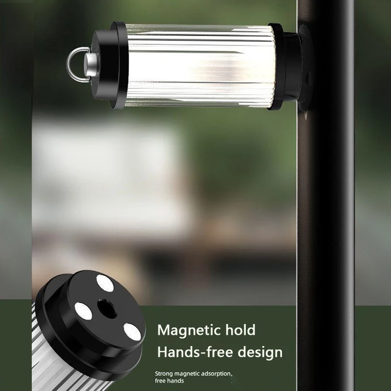 Illuminate your adventures with this camping ambient LED tent lamp, featuring three adjustable lighting modes to suit any setting. Equipped with a powerful magnetic base, it can be easily attached to metal surfaces or hung inside your tent for hands-free use. The 2000Ah capacity ensures long-lasting brightness, making it perfect for camping, hiking, fishing, or emergency situations. Compact and versatile, this lantern provides reliable lighting for both outdoor adventures and everyday use.