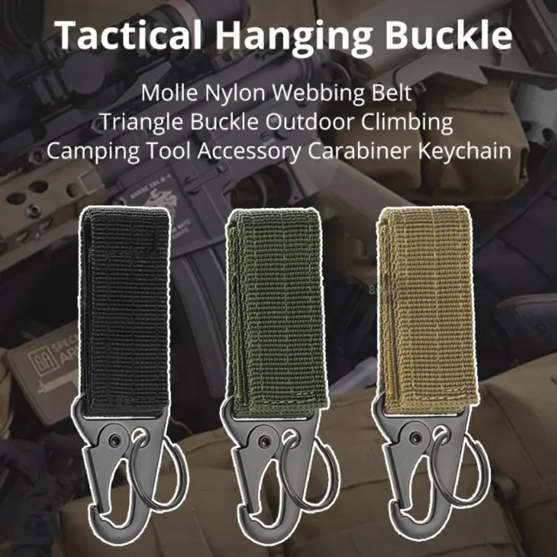 This 2-piece set of tactical Molle nylon carabiner buckles is built for strength and convenience, making it an essential accessory for outdoor activities. Designed with a durable triangle shape and strong nylon webbing, these keychain clips easily attach to belts, backpacks, or Molle systems for quick access to gear. Perfect for climbing, camping, hiking, or everyday carry, they provide a secure and practical way to organize tools, keys, and outdoor essentials while keeping them within reach.